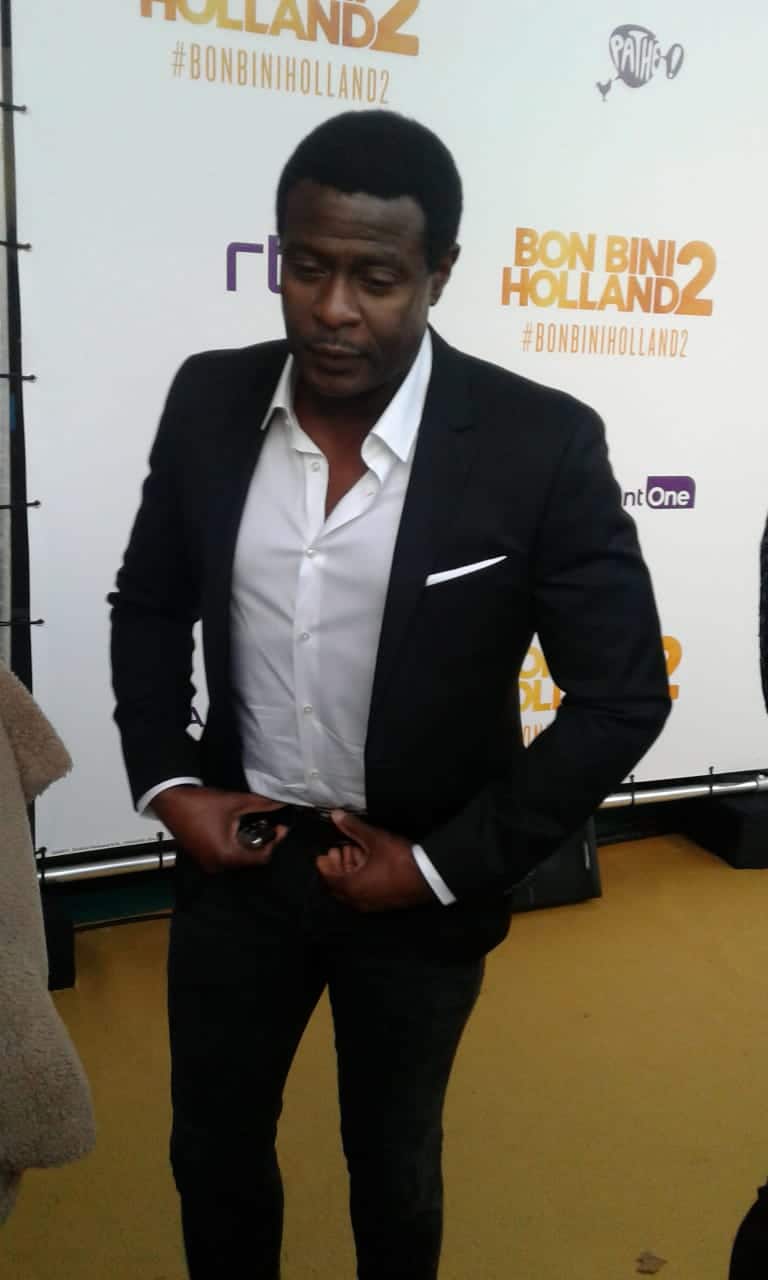 De hectiek neemt gauw de overhand. “Jandino, Jandino”, hoor ik iemand naast me roepen. Was het moeilijk samenwerken Jandino?” Hij is aangekomen. Je kan zien dat hij dit al jaren doet; de drukte overweldigt hem niet. Hij merkt me op, ziet dat ik er voor AFRO Magazine ben en kijkt mij met een glimlach aan.