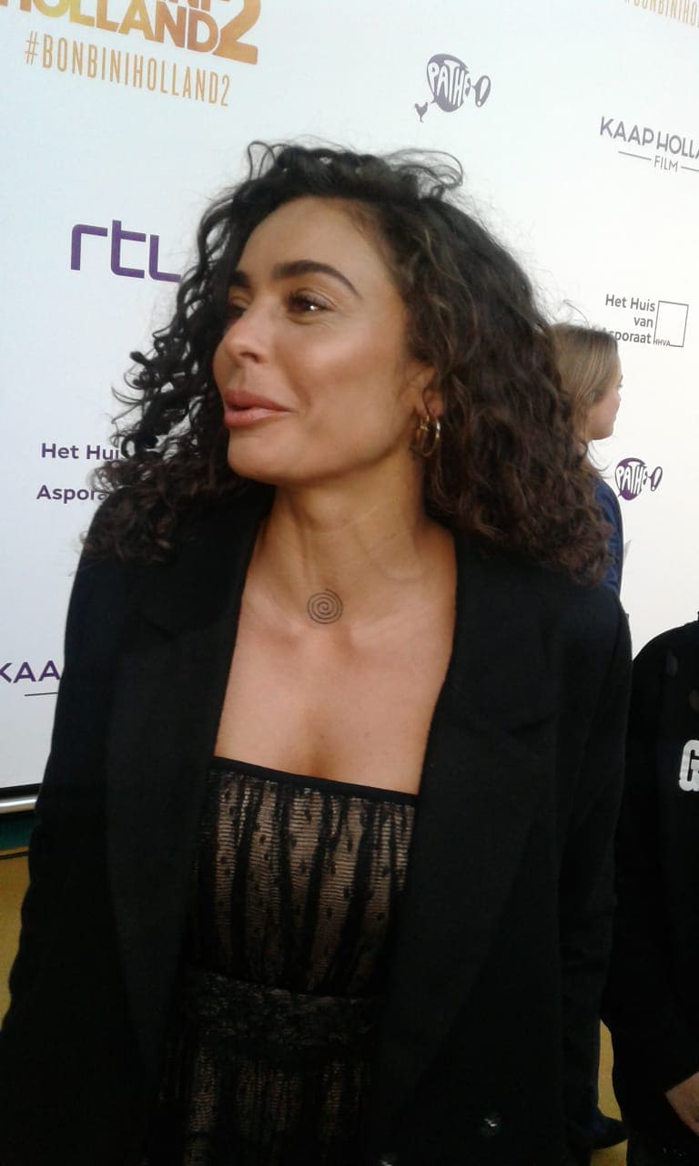 Fajah Lourens betreedt de rode loper samen met haar zoon. Ze zegt dat ze benieuwd is naar de film. “Jandino’s humor ligt mij wel. Ik vind het  gewoon grappig om ernaar te kijken. Ik ben erg benieuwd”, zegt ze.
