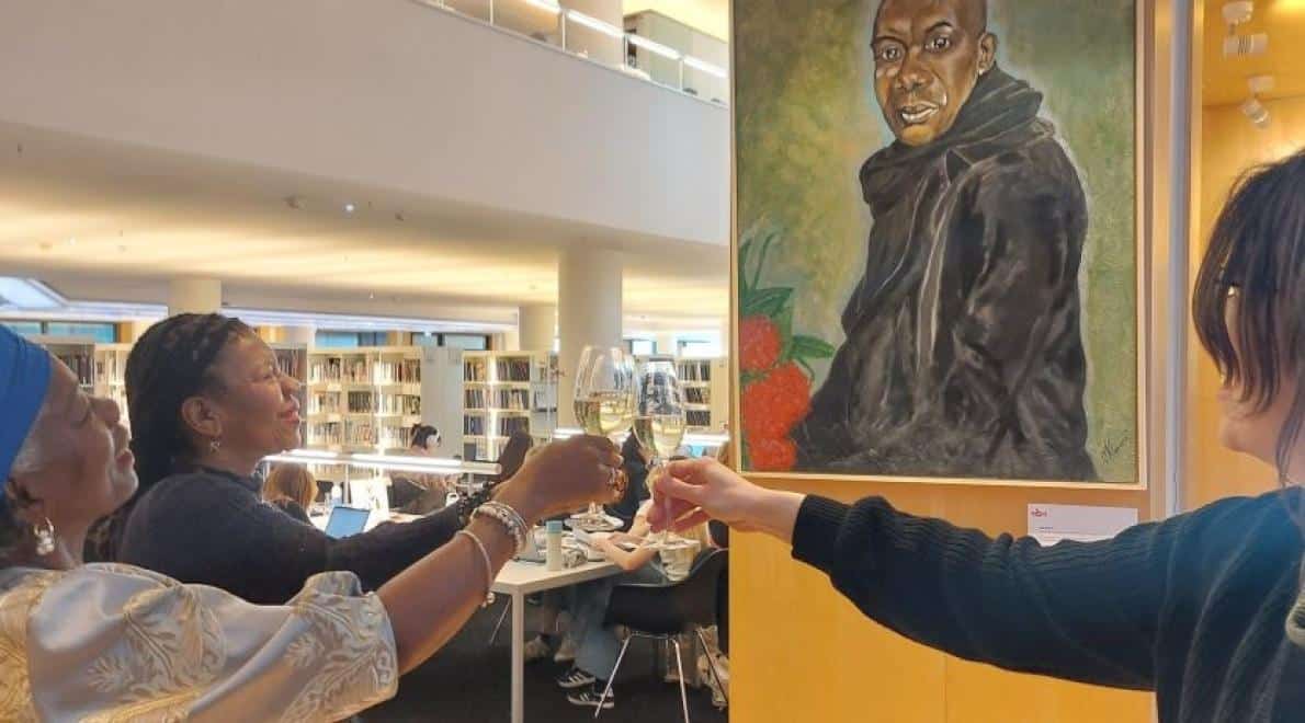 Kunstenares Corina Klaassens hoorde ten overstaande van het 240 koppen tellende publiek in de zaal dat haar kunstwerk van Clark Accord het enige schrijversportret is die in de OBA hangt. Anat Harel, programma-manager OBA, voegde er aan toe dat het portret daarom alleen al bijzonder is naast het feit dat niet eerder een schrijver met Surinaamse roots een dergelijk eerbetoon ten deel is gevallen in de OBA.