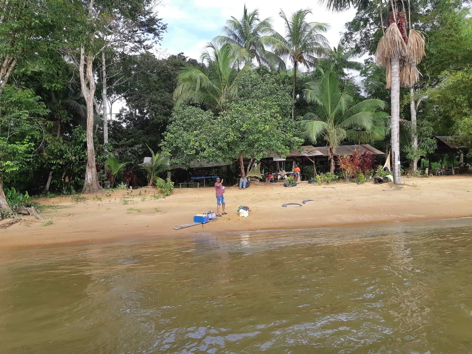 Bij Toledo heeft mijn broer Vivian (Hokstam, Kangoeroeschool) zandopgravers een geriefelijk strand laten aanleggen op wat vroeger een modderoever was. We bouwden er enkele hutjes waar je heerlijk in een hangmat het gejaagde van het leven even kan vergeten. Meteen daarachter heerst een oude sterappelboom; we zijn net te laat in het seizoen voor haar sappige vruchten. Apen hebben zich te goed gedaan aan al die melkachtige heerlijkheid; de grond ligt bezaaid met half opgevreten appels .