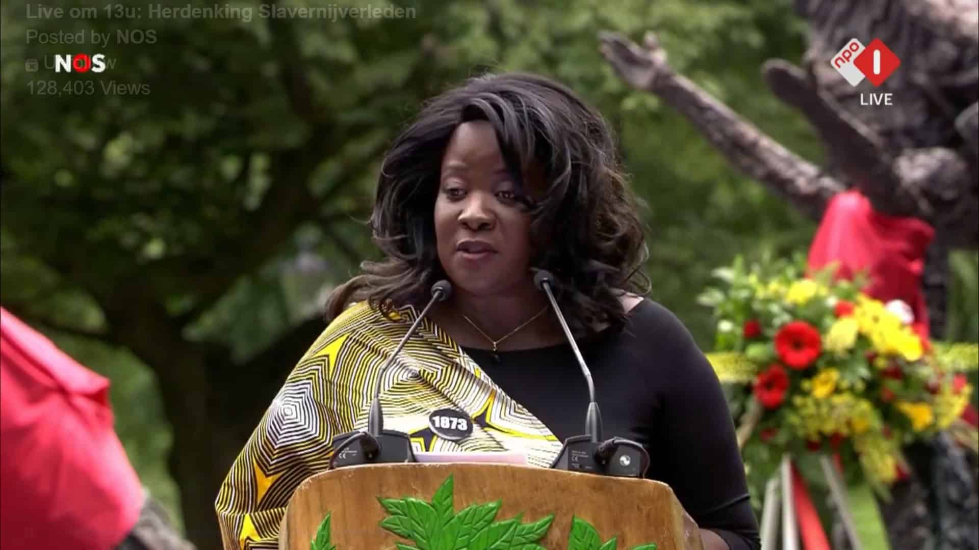 Ze riep Nederlanders op om hun rug niet meer te keren naar Nederlands’ rol in de Slavenhandel. “Net zoals we onze rug keerden, kunnen we ons nu weer omkeren en terugblikken. Geen van ons heeft iemand tot slaaf gemaakt zien worden; we hebben de Vrijheidsstrijders niet ontmoet, maar ons Slavenverleden gaat nooit weg.”