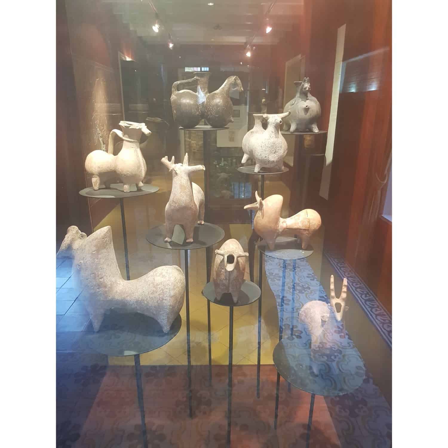 Een aantal kleine borden wijzen ons de weg naar het museum. Op het kleine hofje voor het museum, wordt je begroet door een mooi standbeeld van Chi Chi. De ingang van Kura Hulanda is bovenaan de trap naast haar. “Bon dia”, groetten de vriendelijke caissière en ik elkaar. Een entreekaartje kost zo’n 17,50 florin de man (ongeveer €8,75 pp). We krijgen een mooi, geplastificeerd plattegrond van het museum en de dame vertelt waar wij onze route moeten starten. Het begint in het Afrika gedeelte. Prachtige aardewerken worden getoond achter glas. Potten, geschriften, wapens, allemaal uit de tijd van Mesopotamië. Verschillende heilige boeken, beelden van goden en andere voorwerpen uit Egypte worden tentoongesteld. Het is niet druk in het museum, dus je kan vrij rondlopen en rustig de tijd nemen om alles in je op te nemen.