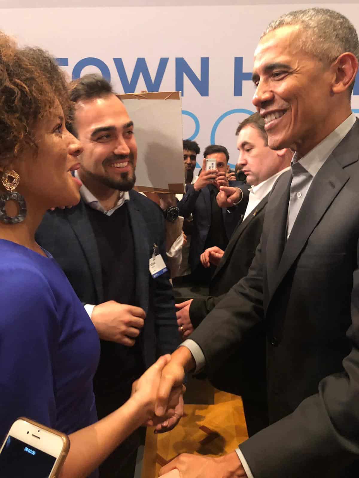 Uitgenodigd worden voor een Town Hall meeting in Berlijn met de voormalig president van de VS was al een grote eer, maar om ook nog nog aangemoedigd te worden door hem vond Samira Rafaela een “kers op de taart.”