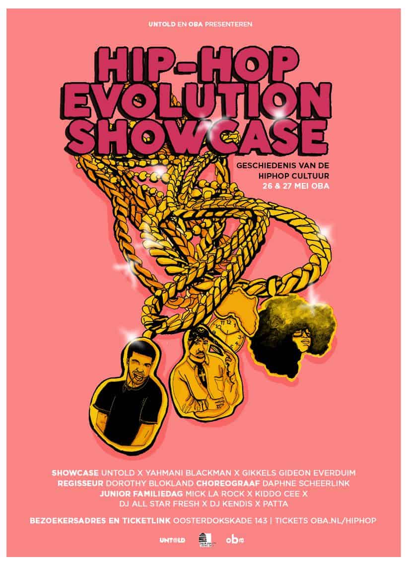 Tijdens het weekend van de Hip-Hop Evolution Showcase op zaterdag 26 en zondag 27 mei worden dans, storytelling, spoken word, rap, scratchen en graffiti interdisciplinair samengebracht om de lange reis die Hiphop heeft afgelegd te vertellen met een showcase en een Junior Familiedagprogramma in de theaterzaal van de Centrale OBA.