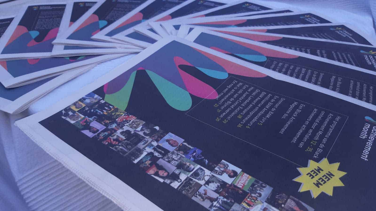 We gingen trouwens een stap verder dan alleen het blad maken. Naast het blad, maakten we ook een speciale Black Achievement Month pagina aan, met daarop het volledige programma in ons agendakatern, de doorbladerbare digitale versie van het blad en alle artikelen die erin te lezen zijn. Op onze Facebook pagina zullen ook alle BAM evenementen stuk voor stuk extra uitgelicht worden, zodat onze lezers niks hoeven te missen.